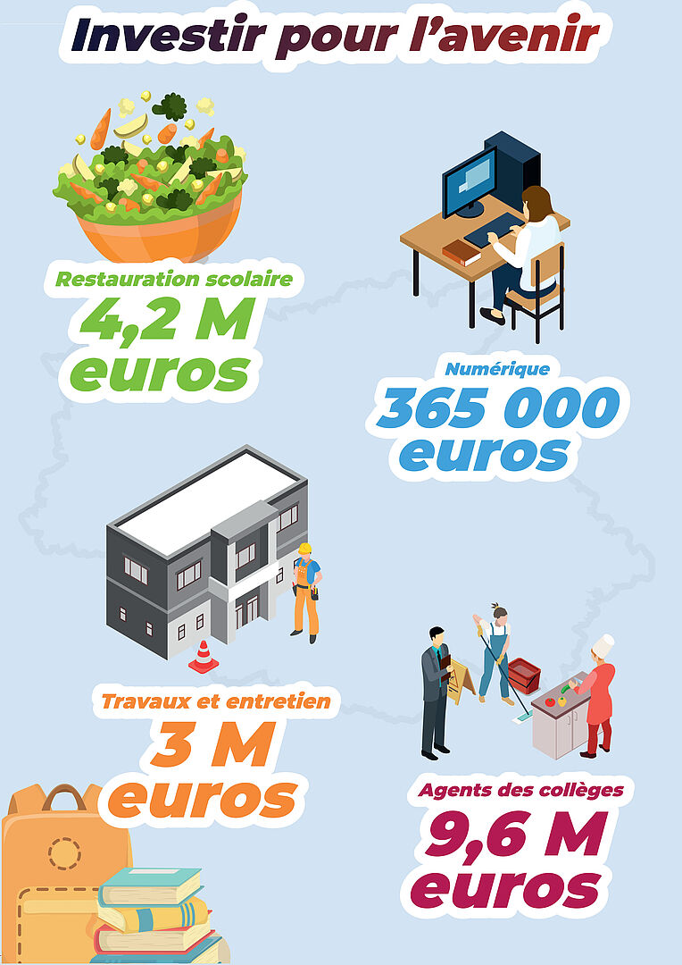 - Des investissements pour moderniser les cuisines, labelliser les restaurants scolaires Ecocert et équiper les collèges en matériel de restauration.